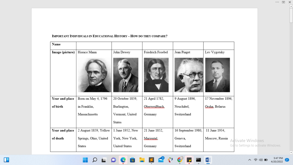 Several individuals had major impacts on education — some for the better, others for the worse. For this activity, you are going to conduct additional research on FIVE different historical figures.