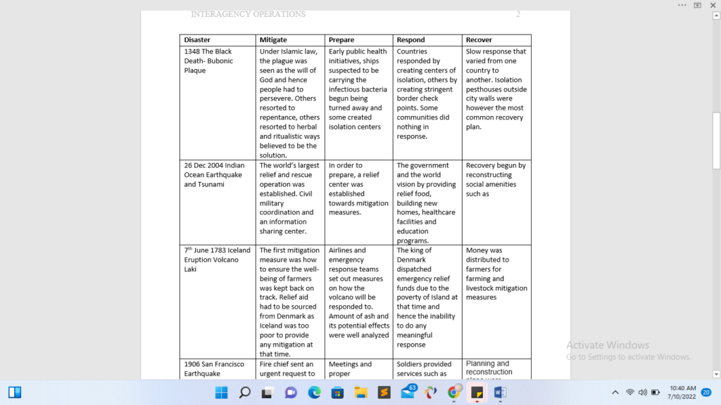 Discuss the role of the Emergency Management process (Mitigate, Prepare, Respond, and Recover) as well as Interagency cooperation for each disaster IF it were to happen in 2017. What have we learned from these past disasters?