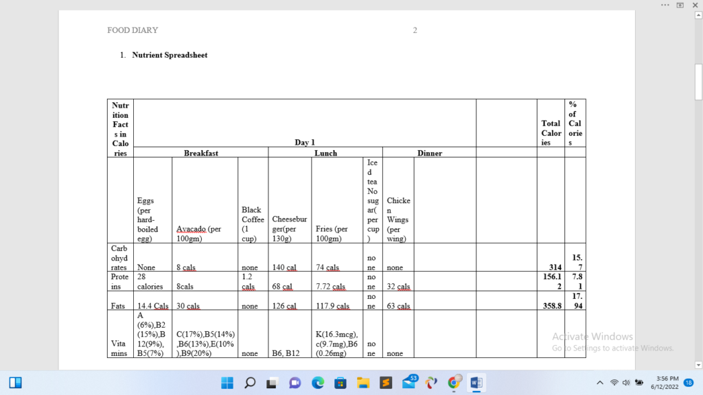 nutrient spreadsheet. Provide detailed situational information including where you were when you were eating the food, what you were doing, and why you chose to eat