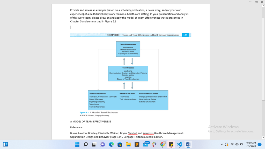 The healthcare sector has a diverse number of teams most of which I have had the privilege of working with. One of the notable team that I have recently worked with is the multidisciplinary work team. A multidisciplinary team is made up of different healthcare professionals that have different specialized skills and experience in running the day to day activities of a healthcare institution. In this multidisciplinary setup, members work together to ensure that the health care services provided are of good quality (Burns, Bradley & Weiner, 2012).