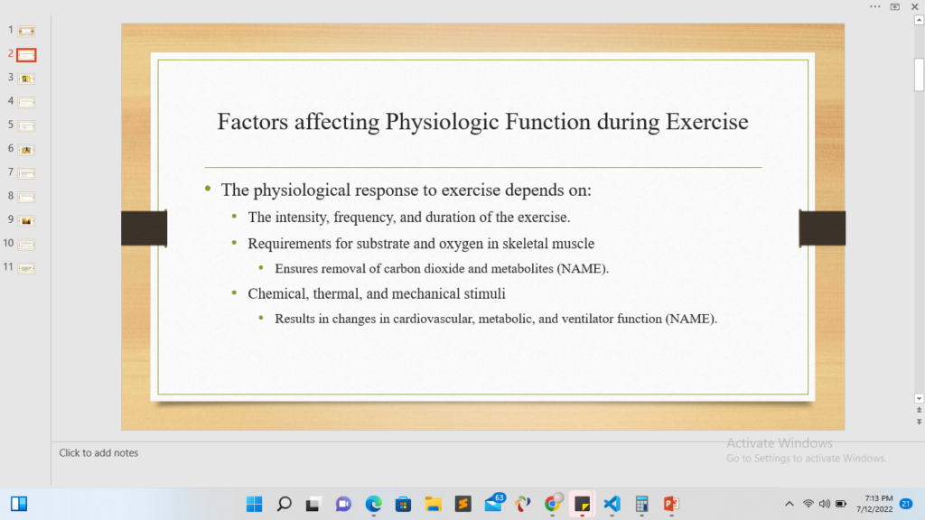 Explain how heat production resulting from oxygen uptake affects physiologic function during exercise.