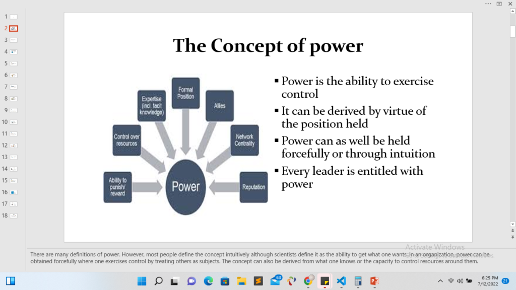 Explain power, and compare how it relates to leadership.